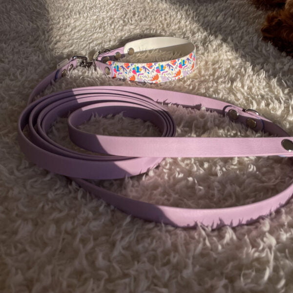 Aksesuarai pagamintas iš BioThane® medžiagos, kuri yra veganiška odos alternatyva. Visi produktai yra rankų darbo. Galima individualiai pritaikyti pagal kiekvieno augintinio apimtis.