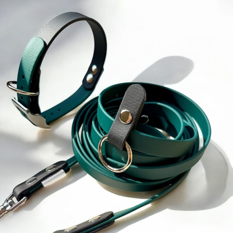 Biotano pavadėlio ir MIDI antkaklio rinkinys DARK GREEN BLACK MULTI