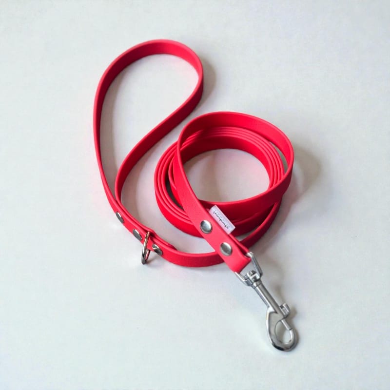 Plonesnio dizaino, raudonas pavadėlis šunims, Biotano pavadėlis, puikiai tiks pramogas mėgstantiems šunims ir jų šeimininkams. Biotanas yra labai stipri medžiaga ir gali atlaikyti itin stiprų tempimą. Pavadelis pagamintas iš BioThane® – specialios JAV patentuotos medžiagos. Biotanas kitaip dar vadinamas ‘veganiška oda’, tačiau už odą stipresnis. Medžiagos paviršius turi smulkų raštą, tačiau jis išlieka labai lengvai valomas ir plaunamas vandeniu. Biotanas nebijo drėgmės, išlieka minkštas ir malonus net prie didelio šalčio. Bakterijos neįsigeria į medžiagos vidų, tad šuns pavadėlis nepelija, nesugeria kvapų. Pavadėlio spalva ilgaamžiška, o jo priežiūra paprasta. Tai puikus pasirinkimas įvairių veislių šunims. Ilgo kailio savininkai gali būti ramūs – medžiaga nesukelia alergijos bei neįsivelia į kailį.