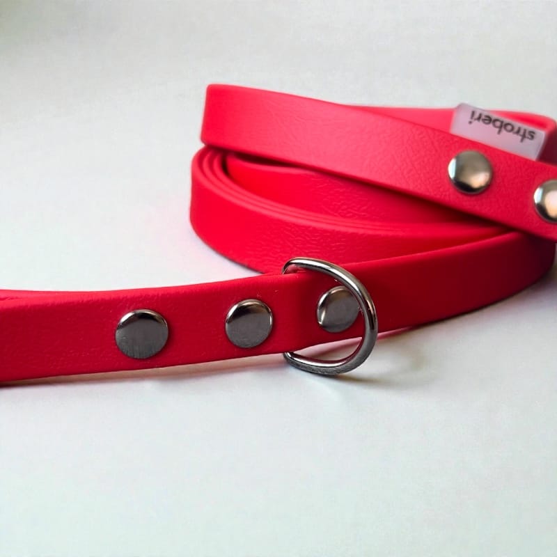 Stroberi pavadėlis šunims pagamintas iš BioThane® medžiagos, kuri yra veganiška odos alternatyva. Visi pavadėliai yra rankų darbo. Esant poreikiui, pavadėlio spalva ir ilgis gali būti keičiami. Pavadėlio medžiaga atlaiko milžinišką tempima, tad tavo augintinis bus saugus.